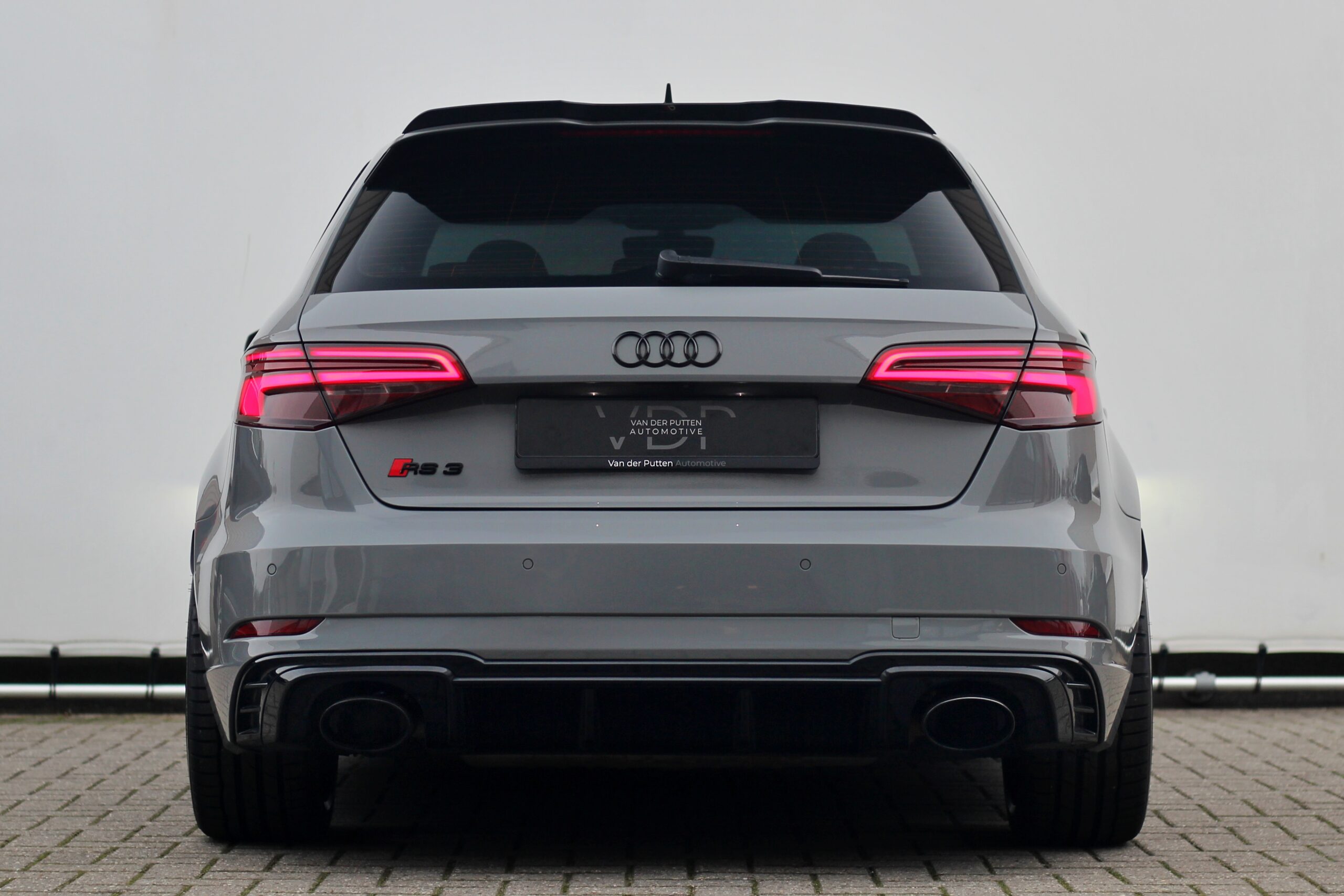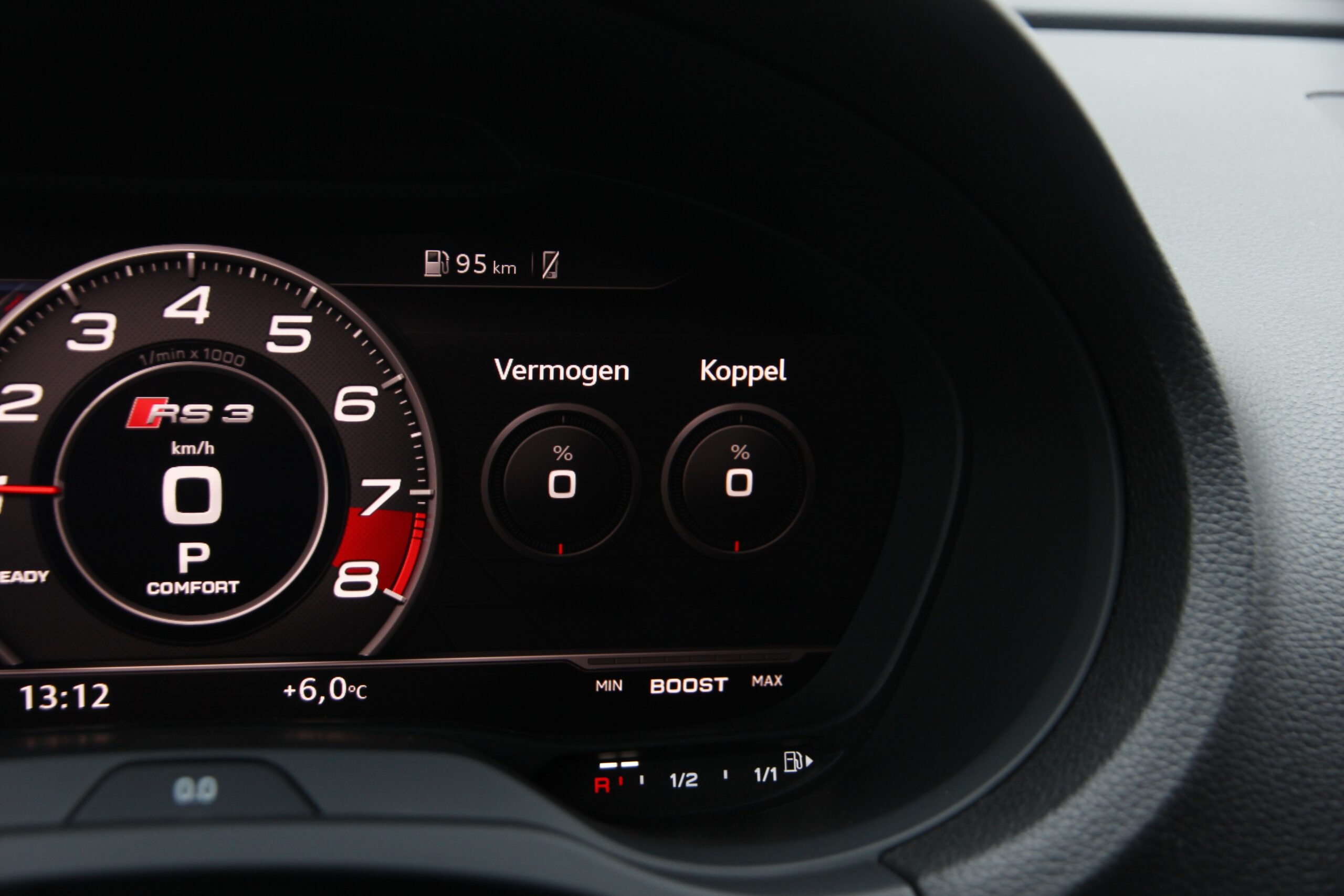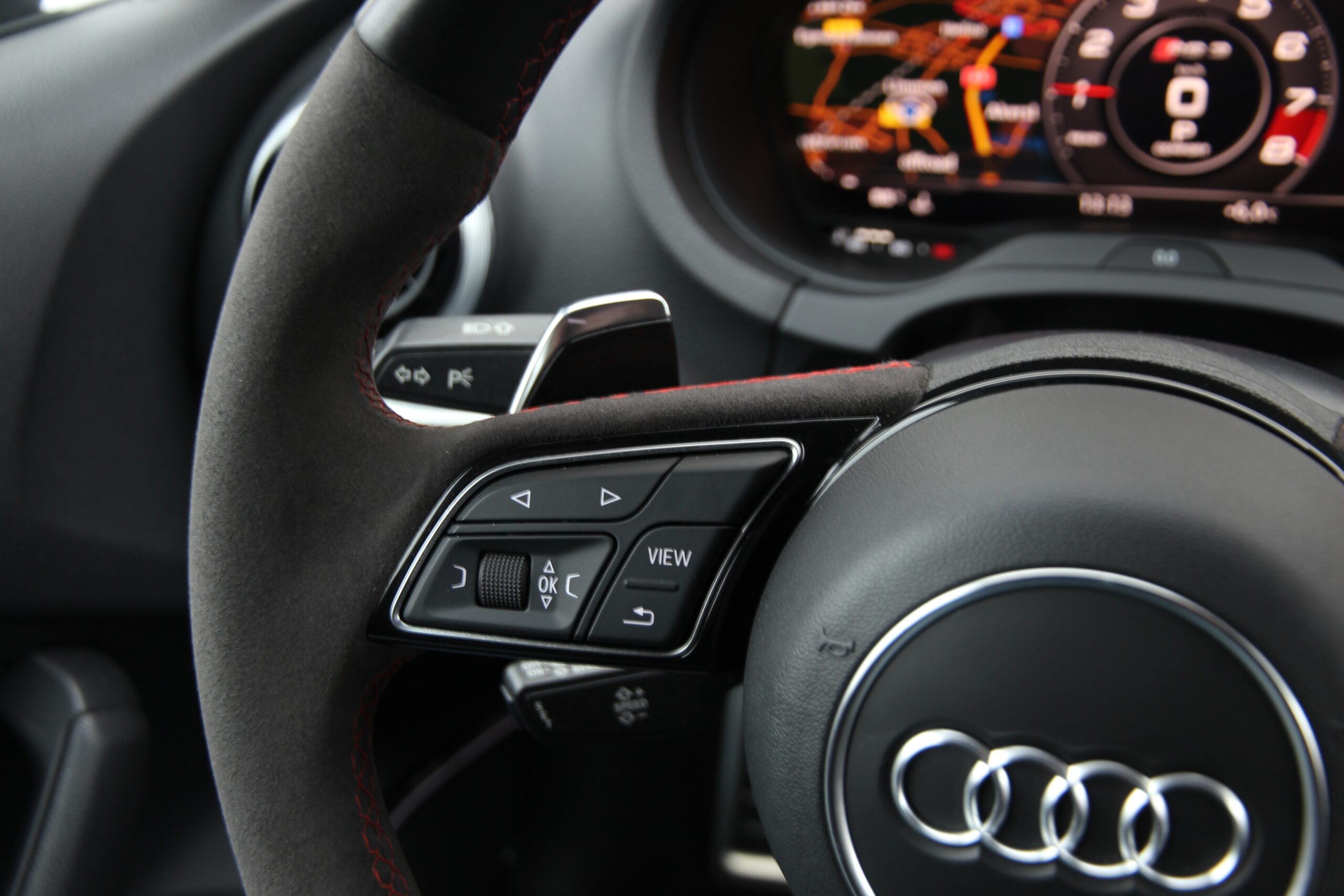 De Audi RS3 is naast de geweldige specificatie van kleuren zeer rijkelijk uitgerust. Zo beschikt de auto over een Bang & Olufsen geluidssysteem, Apple Carplay / Android Auto, Keyless Entry, Matrix-beam led koplampen, achteruitrijcamera en het interieur verlichting pakket.