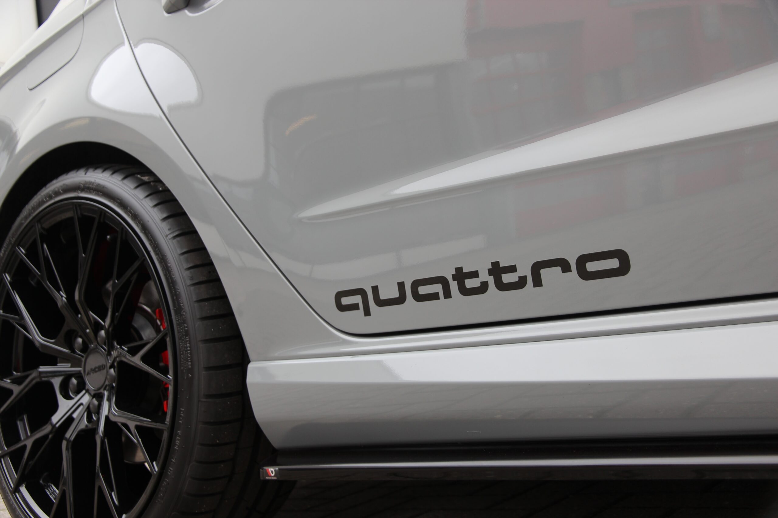 Om te beginnen is er een OPF delete uitgevoerd waardoor je de prachtige 5-cilinder kan horen zoals dat af fabriek al had gemoeten. Voor een beetje extra vermogen en geluid is er een Eventuri Carbon Intake geplaatst, wat ziet dat er gaaf uit! Om het weggedrag te verbeteren en de auto nog iets mooier op de weg te laten liggen is er een Bilstein schroefset geplaatst.