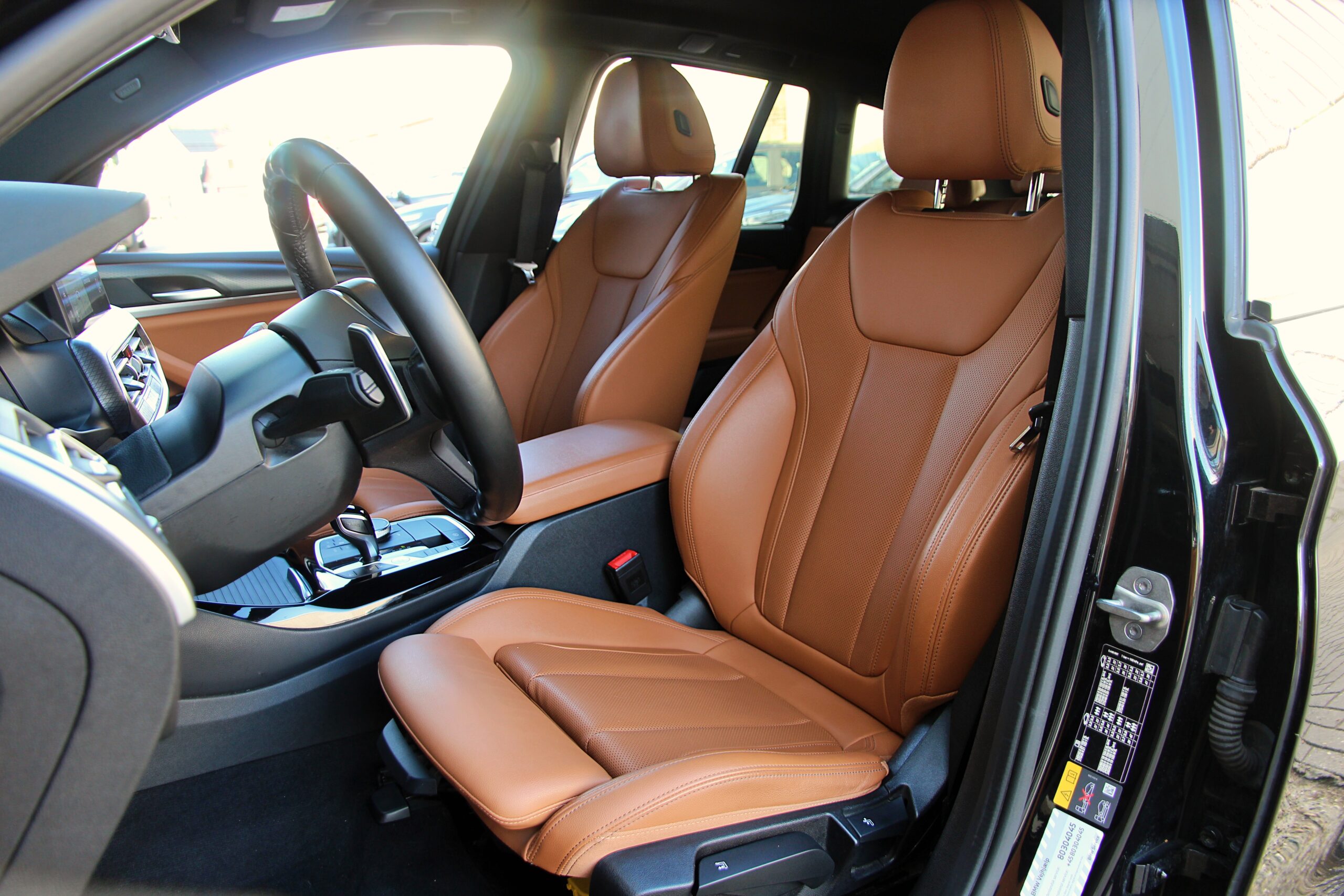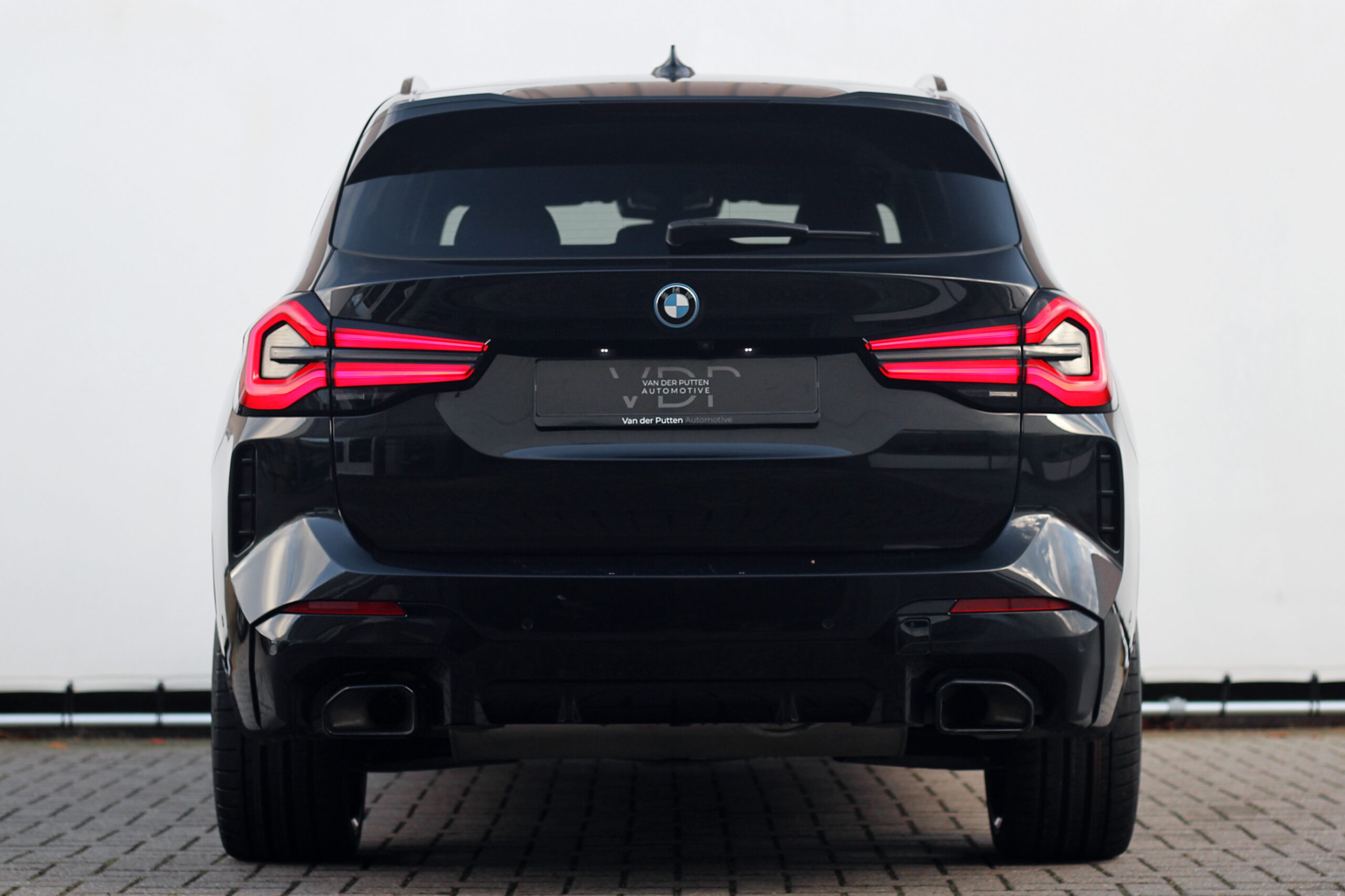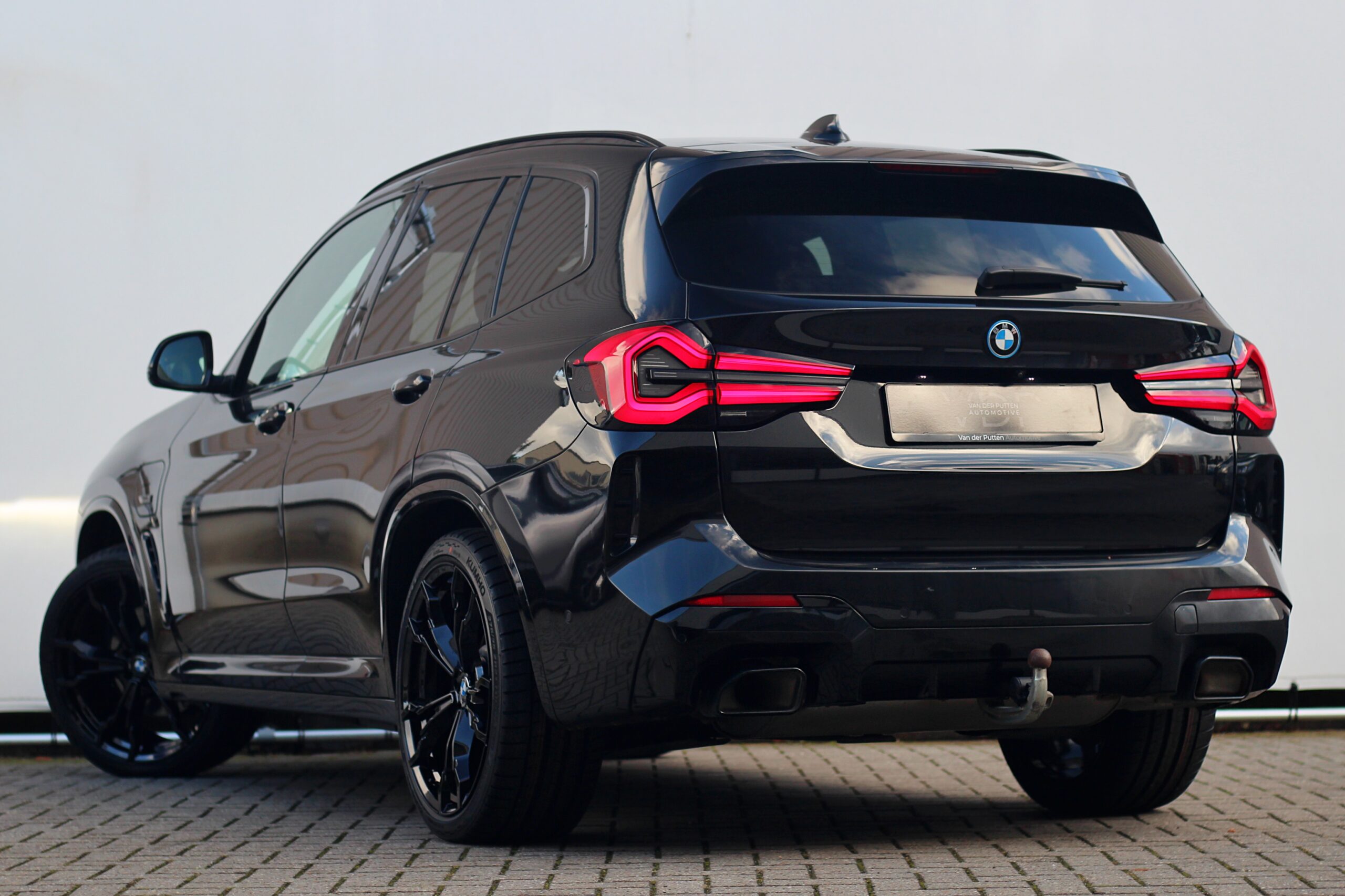 De BMW X3 is uitgevoerd in de kleur “Black Sapphire Metallic” in combinatie met een volledig zwart exterieur als gevolg van het Shadow Line pakket inclusief zwarte ‘nieren’ en zwarte uitlaat sierstukken. De zwarte 21 inch M-Sport velgen maken de look van deze BMW helemaal af.